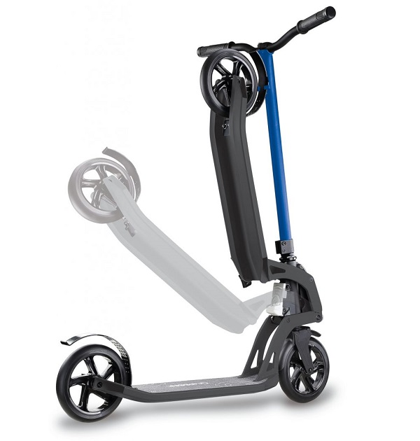 L'amélioration continue des modèles existants a conduit au développement d'un mécanisme de pliage, dans lequel, au lieu d'appuyer sur le bouton du pied, il est nécessaire de soulever et d'abaisser la pince sur le guidon du scooter, après quoi le scooter se plie et passe en mode chariot, ce qui facilite son transport.